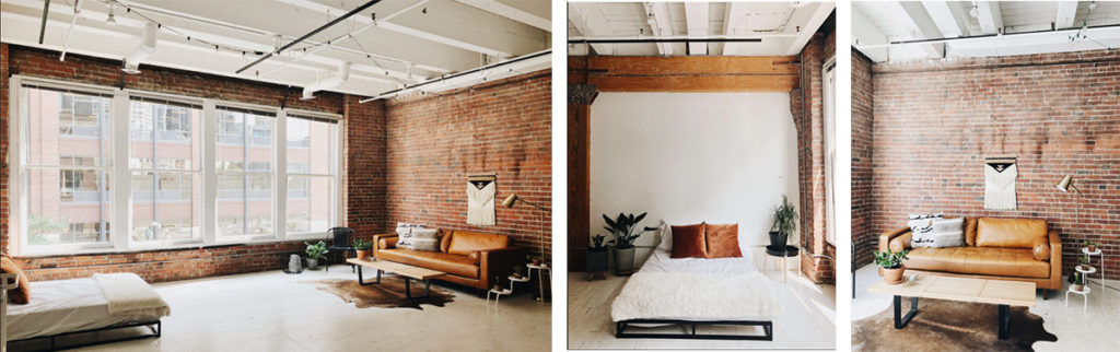 Our Seattle location this year is indoors, which is perfect for the crisp Fall weather. The studio space is outfitted with white walls, brick walls, exposed beams, and all the necessary furniture to make your session cozy and unique to you (photos below).